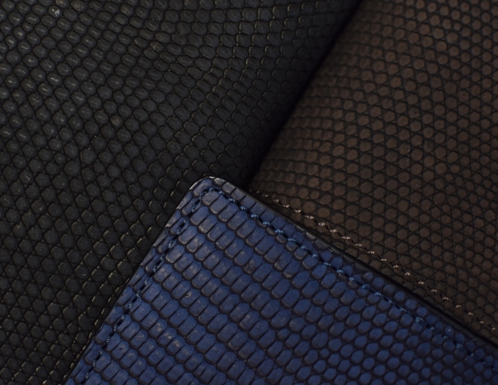 ヨーロッパの大手メゾンにエキゾチックレザーを供給することで知られるフランスのcompagnie des cuirs precieux社が生産するヌバックリザードは細かな丸型の鱗が印象的な非常に上品な皮革です。