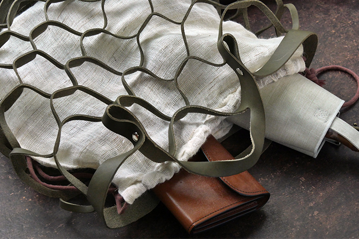 今回はイタリアの銘革・ミネルバリスシオもご用意しました。鮮やかな色とメッシュバッグのフォルムが相まって、遊び心のある鞄に変身します。