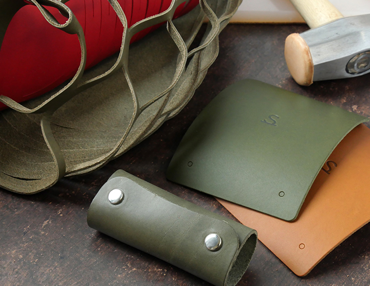 ワークショップでは、お好みのレザーで簡単なレザークラフトを体験して頂けます。