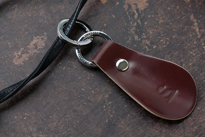 WILDSWANSのオリジナル二重リングが付属していますので、そのままベルトや鞄に取り付けてレザーチャームとしてもお使い頂けます。