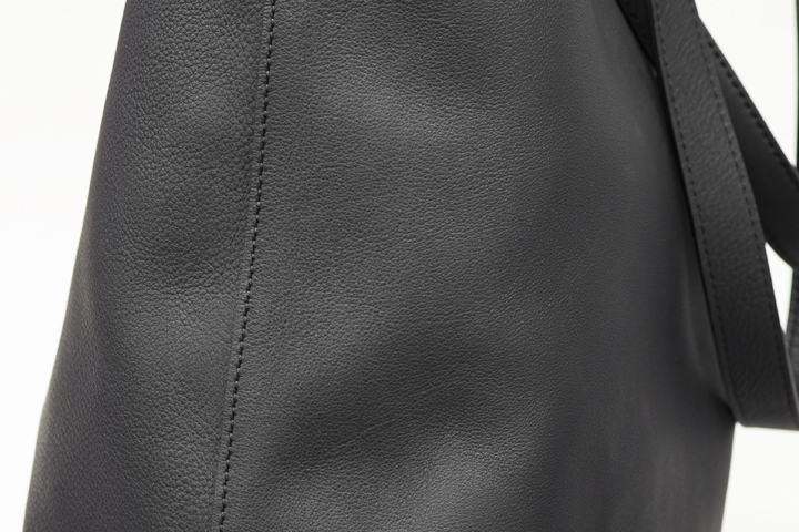 底板は取り付けられていないために収納した荷物によって柔軟に形を変えることで、肩掛けの際に体に密着がし易く、まるで薄手の生地製トートのようなフィット感の高い構造になっています。