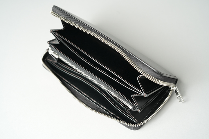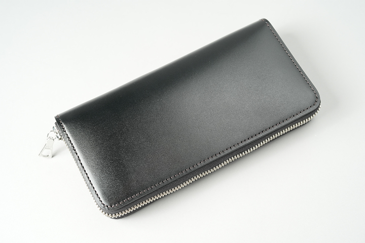 WILDSWANSとCorbo.のチーフデザイナーである古瀬聡氏のコラボレーション「Walkersシリーズ」から生まれたkf-001は、ラウンドファスナー型の長財布です。外装は表裏ともにポケットなどはなく、無駄を削ぎ落した非常にシンプルなディテールです。