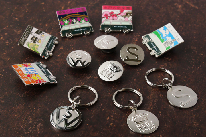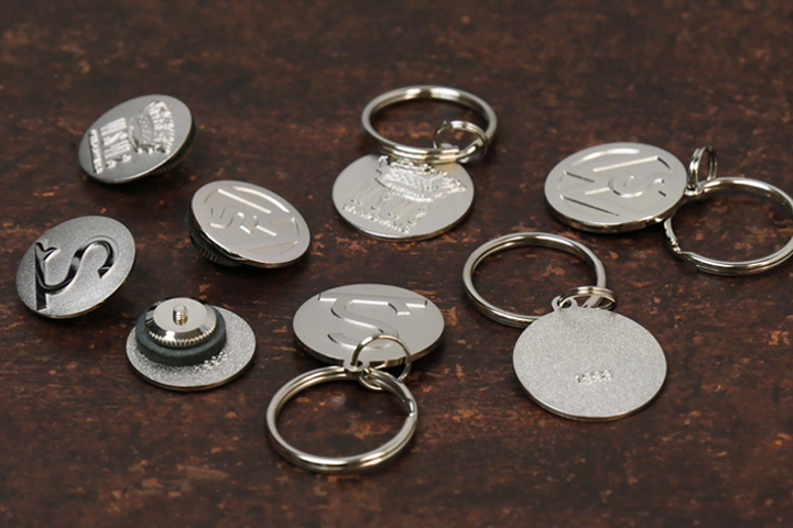 オリジナルピンズとキーリングの素材である真鍮は加工性に富み、ピンズの原型となる金型の凹凸を忠実に再現します。仕上げに使用しているニッケルめっきは美観、変色(酸化)防止に最適なコーティングとされ、剥げ・擦れに対して効果的といえます。