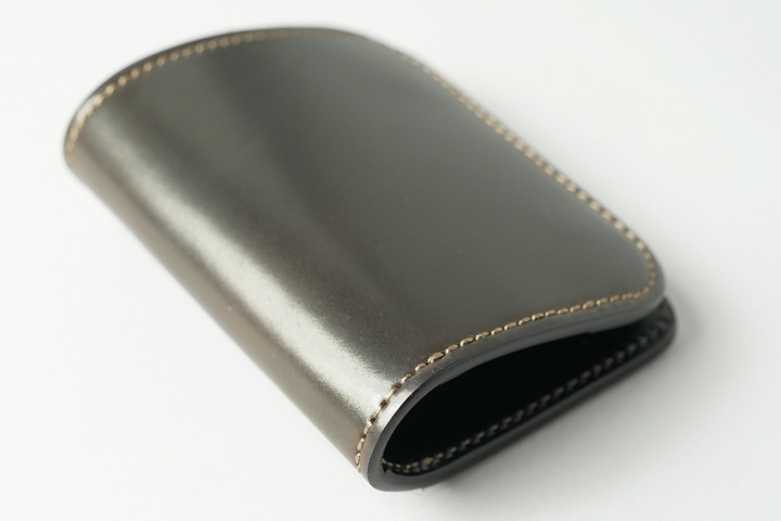 革の質感を純粋に感じることができる定番の名刺入れです。名刺交換のシーンでは、ダークコニャックの不思議な色合いに注目が集まりそうです。