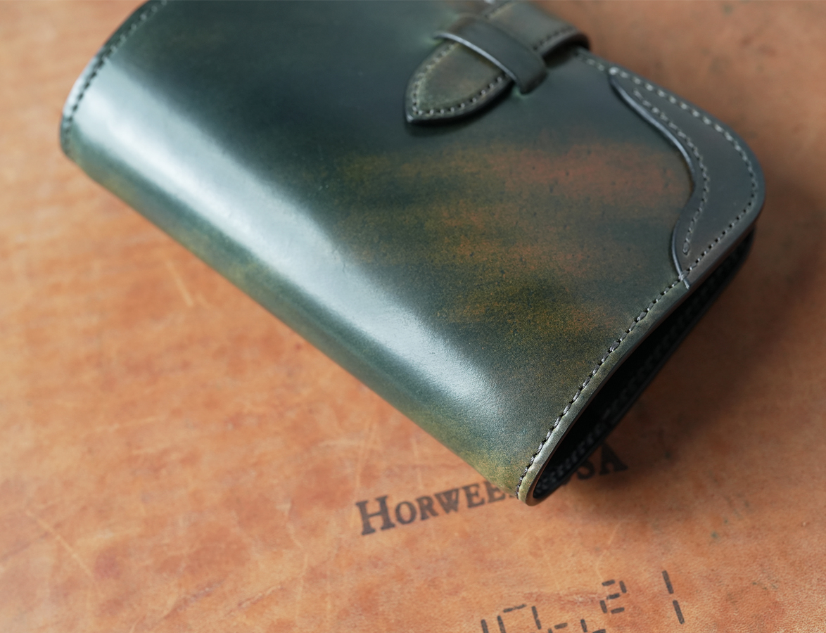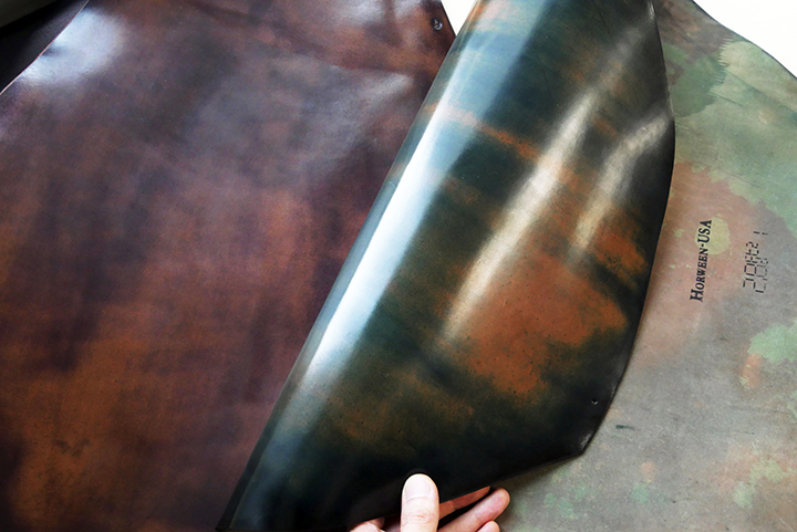 シェルコードバン(マーブル)シリーズ第二弾のご紹介です。様々なカラーを展開するシェルコードバンですが、レギュラーと言えるカラーはいずれも単色となります。今回のように複合的なカラーリングであるマーブルは単色のカラーに比べて生産が難しく、市場に出回る機会が極めて少ないカラーです。貴重なカモフラージュカラーを最後までご覧ください。