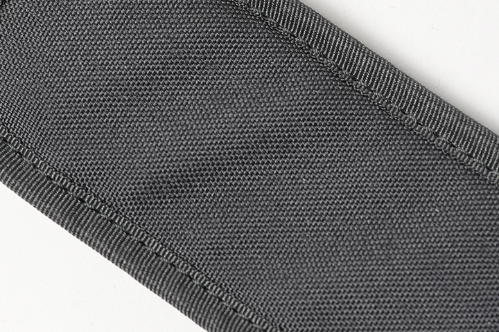 WILDSWANSのトラウザーズストラップでは、CORDURA®500デニールナイロンをメイン素材に使用しています。米軍の装備品やアウトドア用品に用いられる高い耐摩擦・耐久性を誇るインビスタ社のナイロン生地です。軽量で目が細かく柔軟性もあることから、日常生活において手軽に扱うことができる素材です。