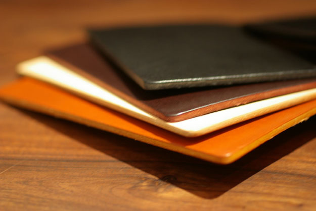 お店には革の見本が置いてありますが、本当にカチカチで板のようです。