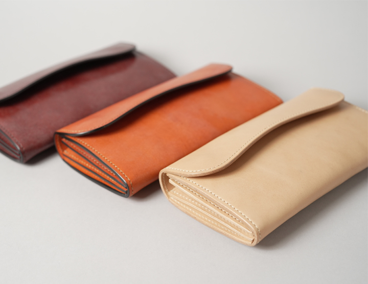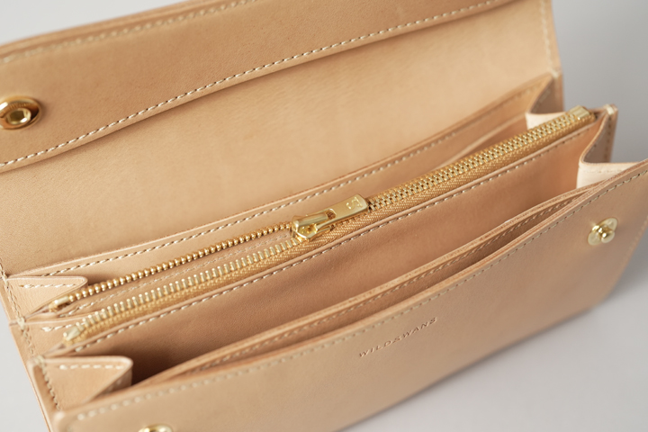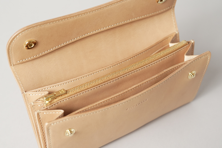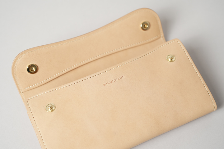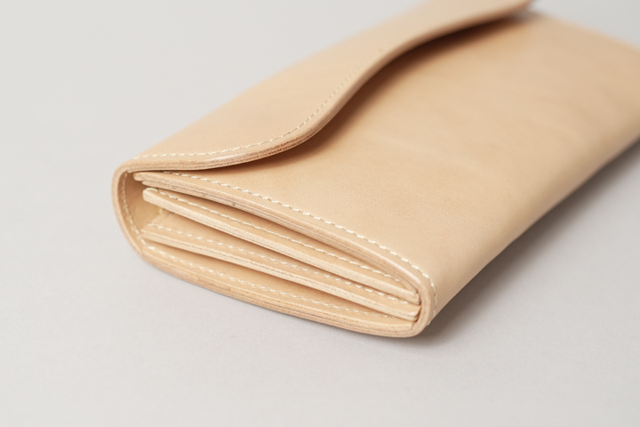 コバ(縁)に染料を用いない「素みがき」を行い、ライトベージュのステッチを合わせて明るくまとめています。