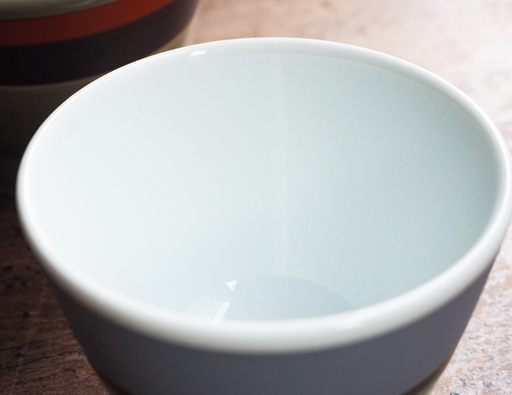 こちらはVERDE(ヴェルデ)です。上品さと透明感を湛えるフランスの伝統色「グレイッシュグリーン」のヴェルデ。器上部のマットなグレーと、艶のあるグリーンとのコンビネーションが美しく、非常にモダンな印象を感じさせます。