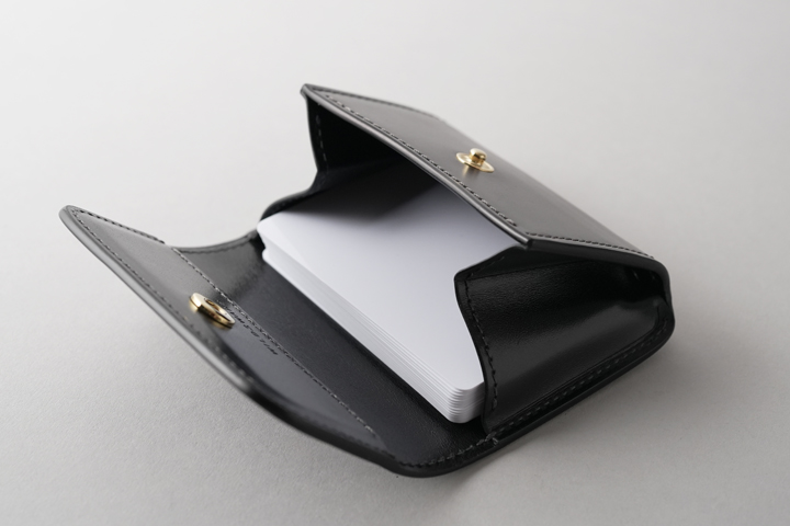 ホック付きのフラップで開閉する、名刺やカード用のマルチケースです。