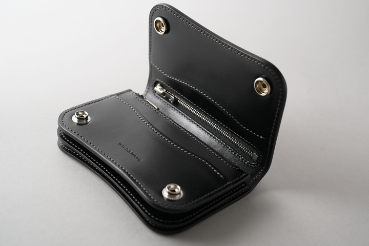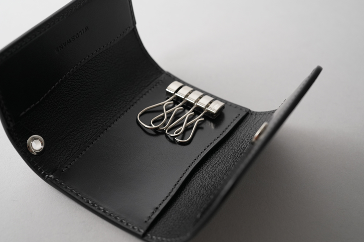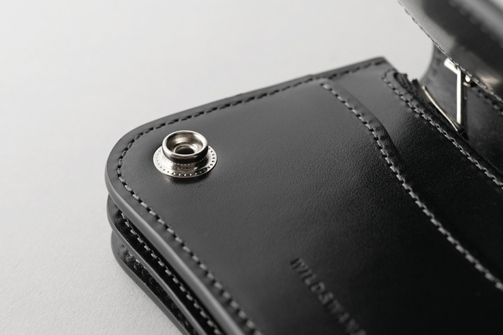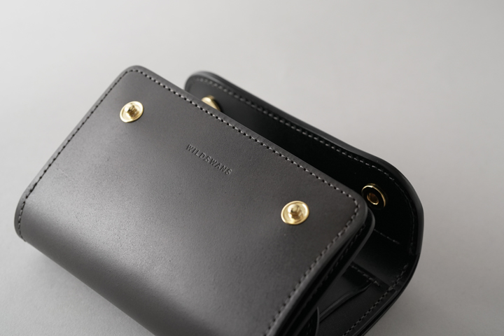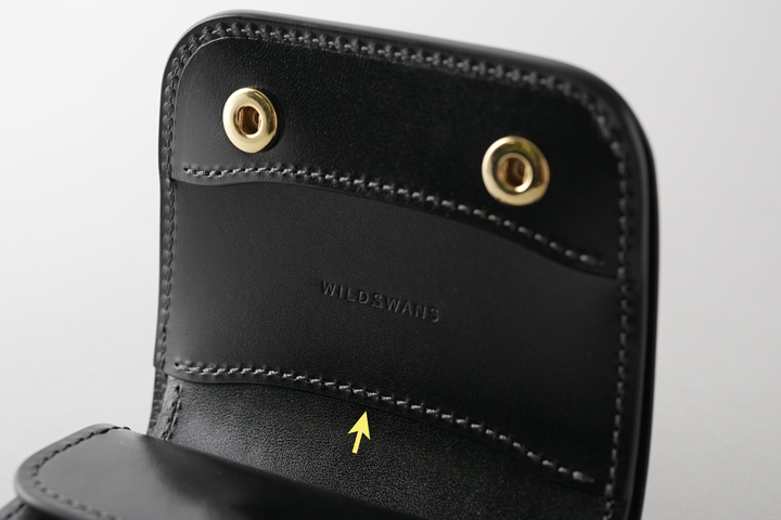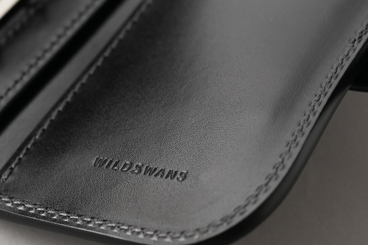本体のフラップは1点のホックによって開閉を致します。 ホック付きのモデルはWILDSWANSの名刺入れには珍しく、新品時からしっかりとフラップを閉じることが出来ます。