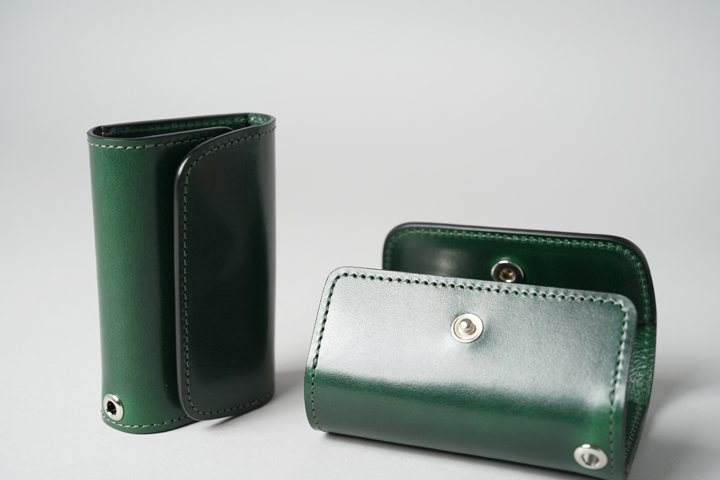 サドルプルアップのGREENを使用したアイテムは以前にもご紹介しましたが、発売後まもなくすべてのアイテムが完売となりました。今回僅かではありますがスポットカラーであるグリーンのサドルプルアップがご用意できましたので、注目の新型キーケースを製作してみました。ぜひご検討ください。