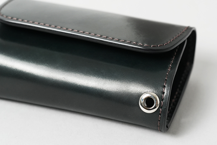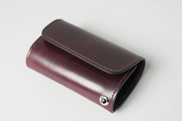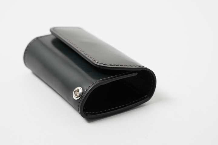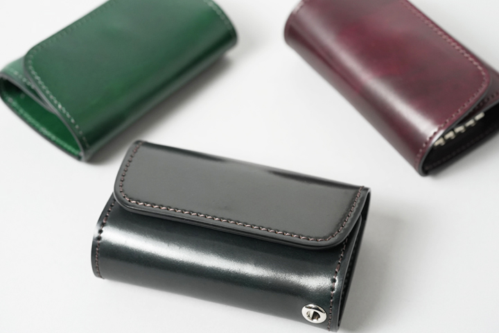 イングリッシュブライドルレザーは、シェルコードバンの鋭い光沢とも相性が良く、また深く上品なカラーコンビネーションも絶妙で、まさに大人にふさわしいキーケースといった佇まいです。