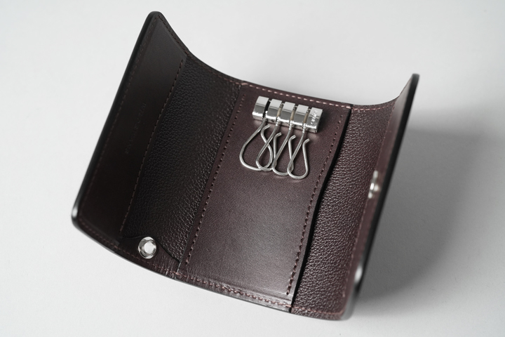 こちらが内装です。中央上部の4連のキーフックはamiet社製のもので、廃番となったCLIPPER2に使用していたものと同様の金具であり、非常に優れた耐久性を持つパーツです。