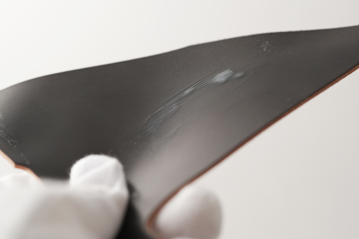 クリームを使用するタイミングは皆さん迷われるところだと思います。 一般的に言われるコードバンのケアはお使い初めから暫くはクリームを使わず、乾燥やザラ付きを感じるようになったらクリームを使うというもので、WILDSWANSのオリジナルコードバンもこの方法で問題はありませんが、オリジナルコードバンについてはオイルコードバンのように初めから油分を豊富に含んでいる、といった状態ではなく加脂などのケアの自由度が高い素材です。