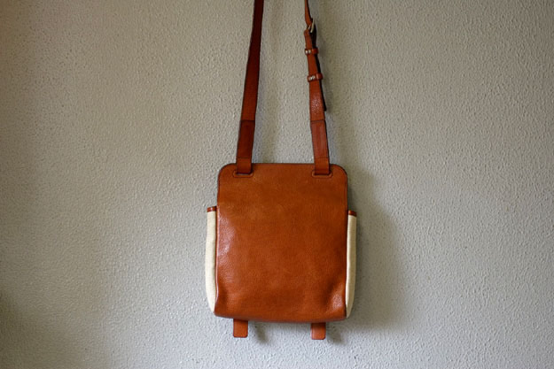 生地と革のコンビのバッグではありますが、革を使用している部分が大部分を占めていますので、殆どフルレザーの鞄と言っていいかも知れません。ただ生地を一部分使用している為、見た目の重さや暑苦しさは感じ無いかと思います。