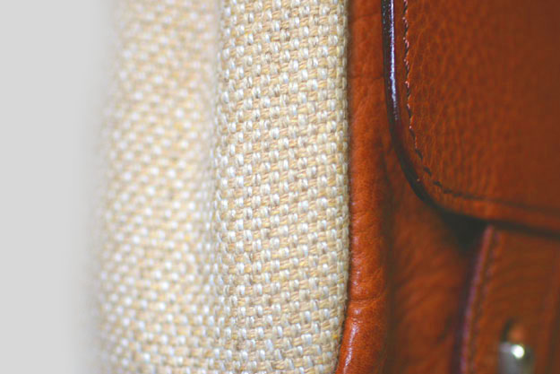 色違いの糸を織り込んだ先染めツイードを、マチ部分にのみ使用しています。これもまた贅沢な使い方なのですが、この鞄の重要なアクセントになっています。