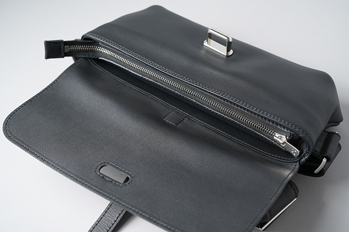 メイン収納部にはYKK社のエクセラファスナーがあしらわれ、大切なモノを安心して収納することができます。