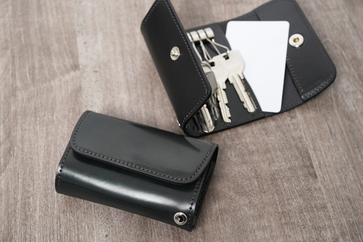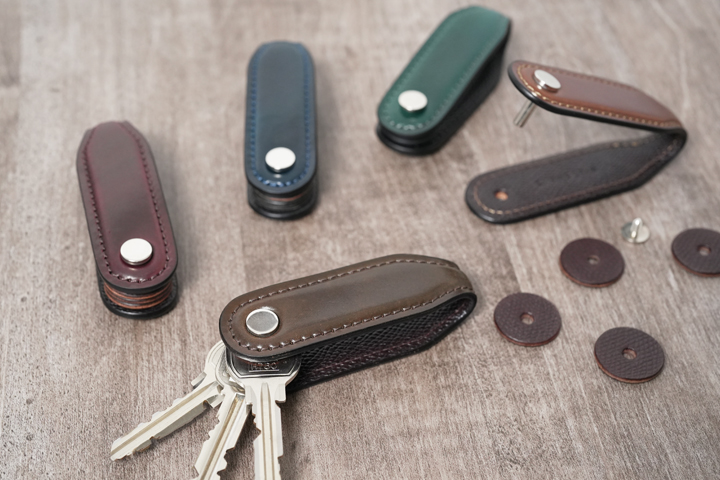 機能性と携帯性を兼ね備えたキーケースです。スライサーと呼ばれる円形の革パーツを用いて、鍵をサンドするように収納します。複数の鍵をコンパクトに持ち運べるアイテムです。