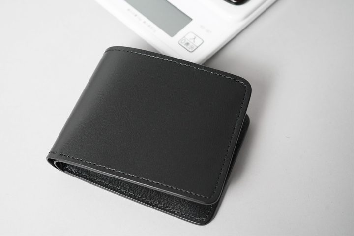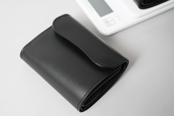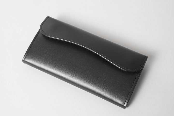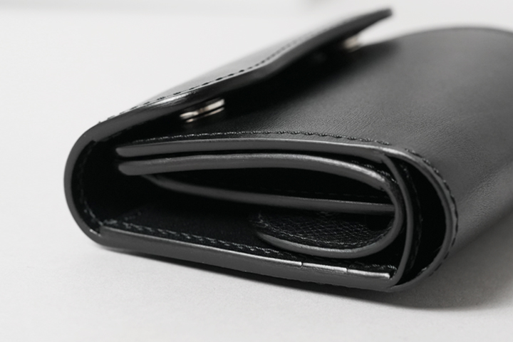 さて、今回はこのテキサスグレインを用いて特別なシリーズを展開します。カラーはNOIR(ノアール)。水シボが映えるブラックカラーに、シルバーのホックと刻印が涼やかな組み合わせです。そして当シリーズの最大の特徴は、薄く軽量なテキサスグレインの強みを引き出す「製品のつくり」にあります。