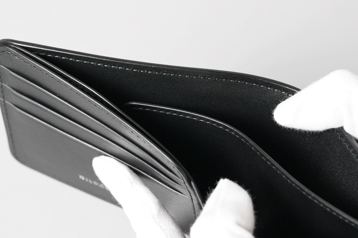 WINGSの札室はシンプルな一室構造でしたが、WINGSよりも厚みのあるGROUNDERは札室に仕切りを設けています。紙幣を収納した際に、この仕切りが紙幣と札室の間を取り持つようにフィットすることで、財布の型崩れ防止に繋がります。