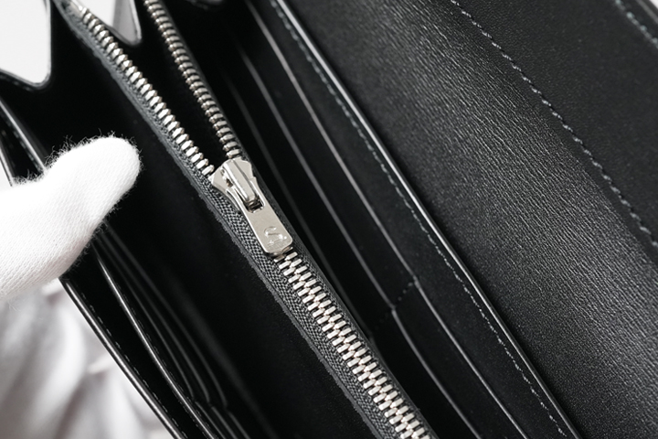 内装の中央にはファスナー式のコインケースが備わっています。シルバーカラーのファスナーにはYKKのエクセラを使用しており、滑らかな引き心地です。