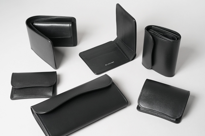 さらに、製品を形成する数多のパーツのほぼ全てに裏貼りを施しています。裏貼りをすることで軽量化と同時に耐久性も高まり、なおかつ床面(皮革の裏側)が隠れるため、薄型のつくりもあってドレッシーな装いに仕上がっています。2枚の皮革を貼り合わせる裏貼りには、縫製とコバを磨く作業が伴います。そのためパーツの一つ一つを丁寧に縫製し、丹念にコバを磨き上げた今回は、いつも以上に惜しみなく手がかけられた職人の魂が宿る特別仕様です。ここからはそんなスペシャルなアイテムについてご紹介して参ります。登場するのは下記の6アイテムです。