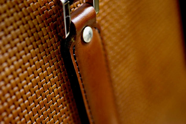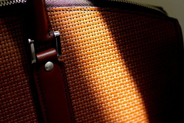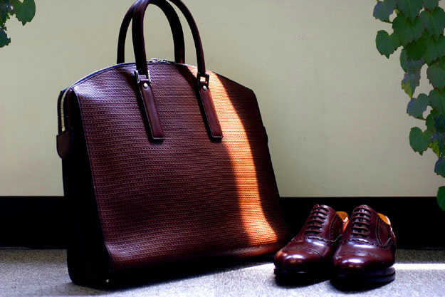 シーズンを選ばず通年使えるように、この革にメッシュの型押しを施してあります。クラフト感のあるイントレチャートとはまた違って、涼しげな印象が特徴的です。またこの型押し加工は通常の型押し加工よりも深く押しているので、只の模様ではなく、より立体的な表面になっているので、傷が目立ちにくいという利点があります。