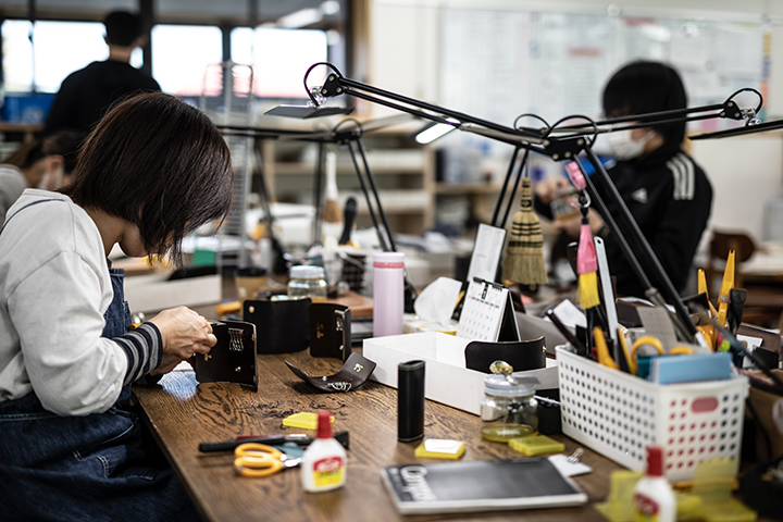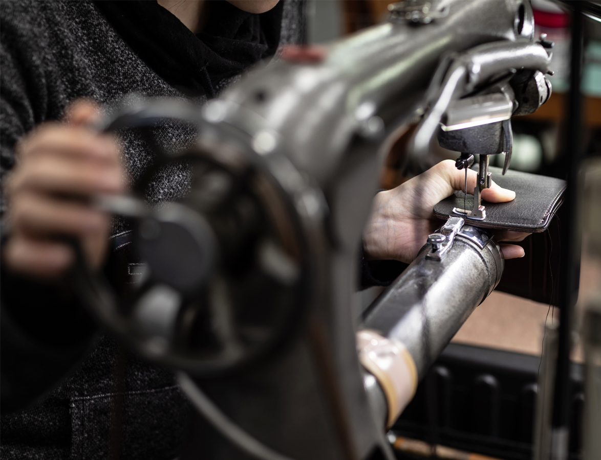 多くのWILDSWANS製品は、茨城県の自社アトリエで職人たちが一つ一つ丁寧に製作をしています。一部に機械による工程もありますが、多くの工程が手作業によるものです。このため一つの製品が出来上がるまで、長い時間を要します。手作業は一見すると非効率なものと捉えられるかもしれませんが、WILDSWANS製品の製作において、機械では困難な工程があることに加え、非常に細かな技術が要求される部分も多くあることから、現在においても手作業の工程を重視してものづくりを行っています。