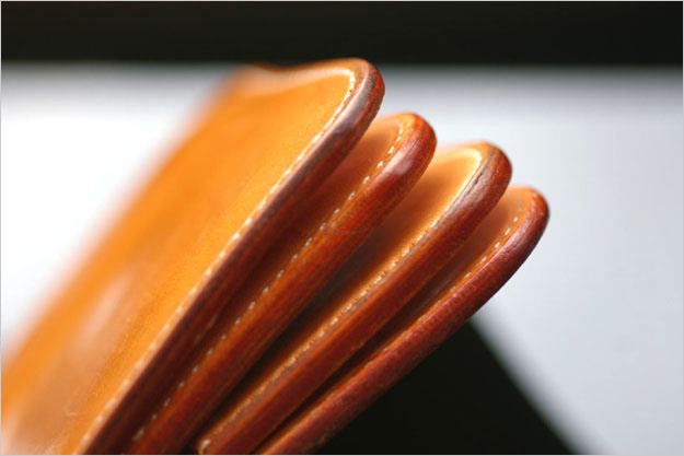 余談ですがナチュラルで作ったものはコバが木目のような風合いになり、ツヤも上がり大変美しい外観になります。このコバが重なり合う様は、まるで木工細工のようです。(といってもブラックもチョコも重厚で格好良いですが。)