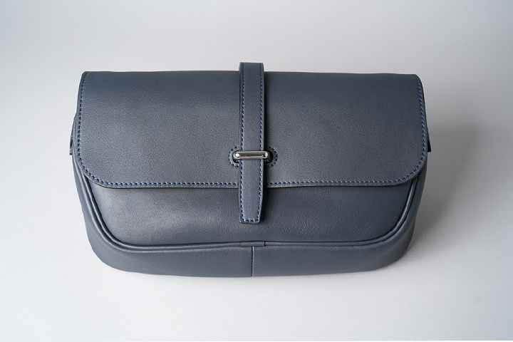近年、WILDSWANSでバッグの製作に用いられるモンパルナスカーフ。こちらを生産するイタリアのボナウド社は、1世紀にわたり高品質な皮革を生産するヨーロッパ屈指のタンナーです。それ故に名立たるメゾンでもその実力が評価されています。手に吸い付くような独特の手触りとほのかに光る光沢を持つモンパルナスカーフは、耐久性においてもその実力を発揮します。クローム鞣しであることに加えて、引き裂きや曲げ伸ばしに対する高い耐性、さらにWILDSWANSが取り扱う他の皮革に比べて水分に対しての一定の耐性を発揮することも付け加えなければなりません。今回WILDSWANSではこのモンパルナスカーフを用いてショルダーバッグのRIGIDを製作しました。