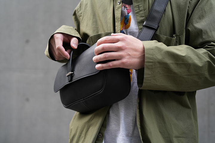 少し大きな容量の2WAYショルダーバッグ・MONTPARNASSE / RIGIDですが、適度な幅のストラップにより長時間の使用時にも疲労を軽減させる工夫が施されています。また、メイン素材であるモンパルナスカーフ自体が比較的軽量でソフトな質感を持つレザーであることから、一般的なレザーのショルダーバッグよりも快適にお使い頂けます。