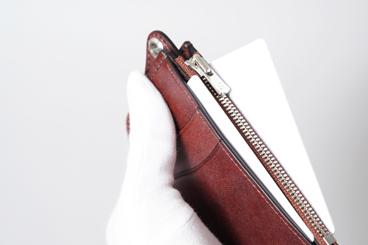 薄く軽く、時代のニーズに応えたフラグメントケース。スタイリッシュな見た目ですが、皮革ならではの風合いもしっかりと溶け込んでいます。