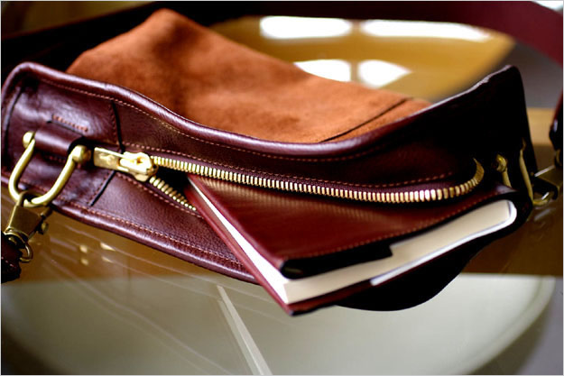 COLLIERに付いての続きです。ミネルバ・ボックスも風合いが増していく大変魅力的な革なのですが、本体に使用しているヴェロアもまた独特の経年変化が楽しめる味のある革です。 (写真は新書版サイズの本を入れてみたところです。マチ幅が約⒍5センチありますので2~3冊は余裕で入ります。)