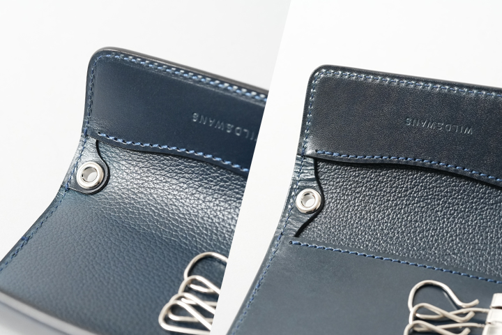 CLIPPER IIIは内装革に型押しがされてることで、収納した鍵によって生じる傷が目立ちにくくなります。