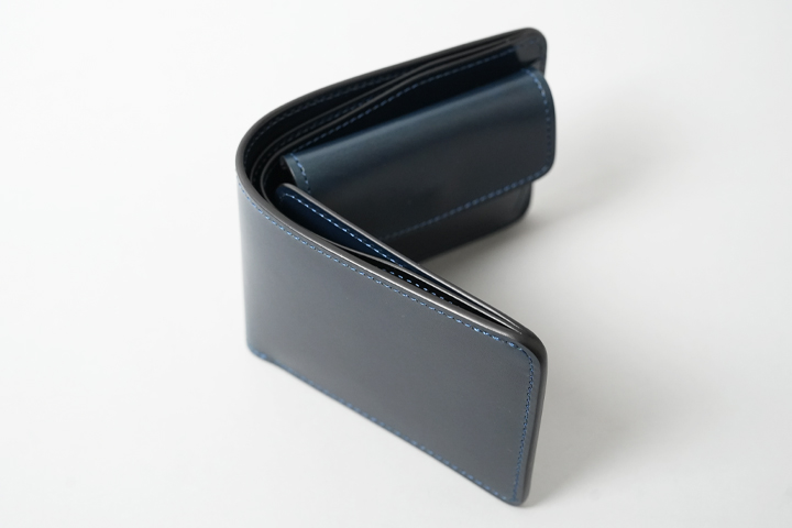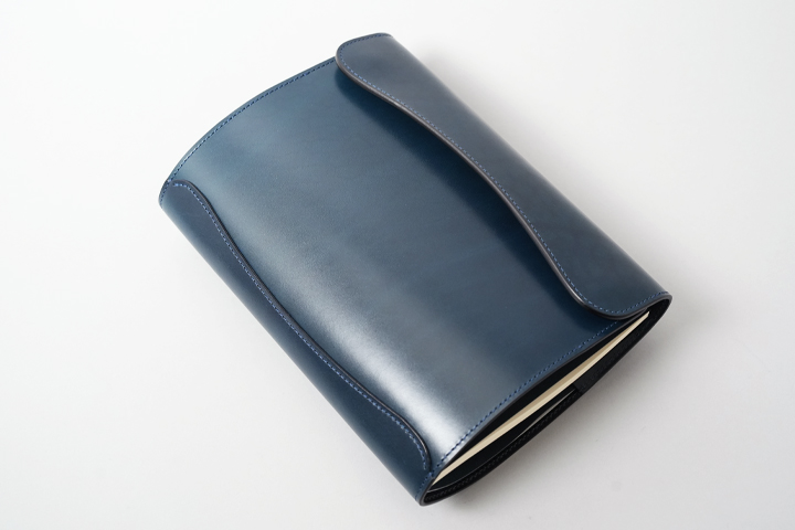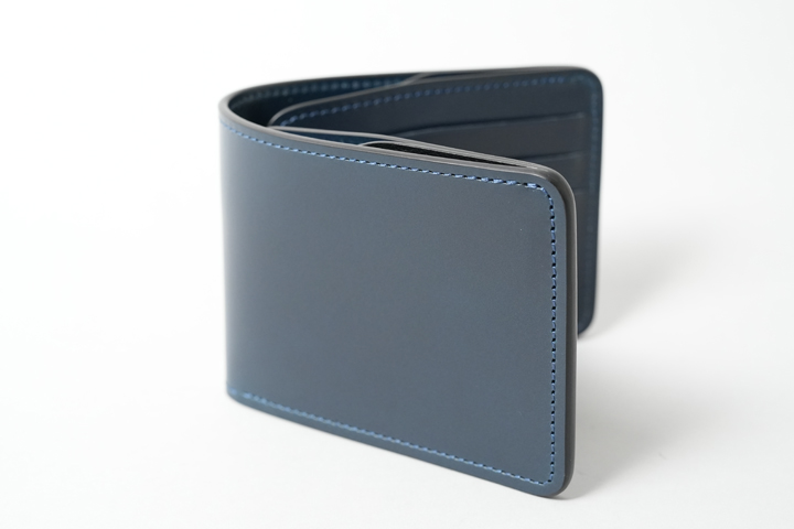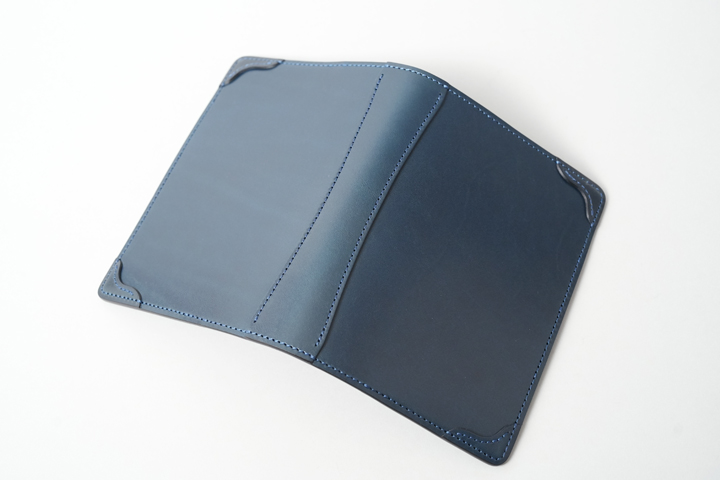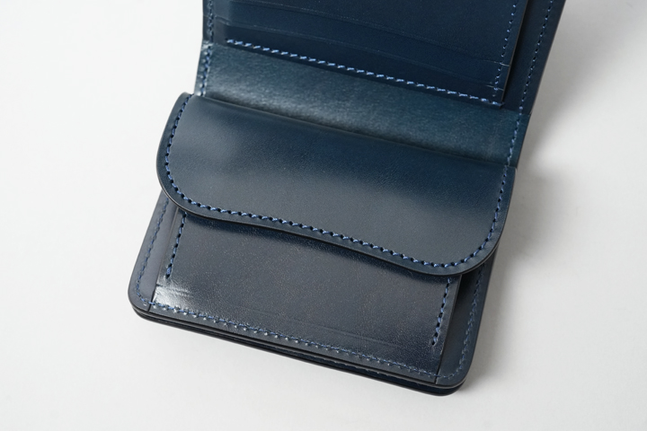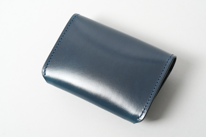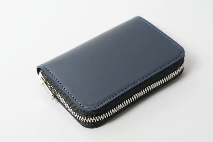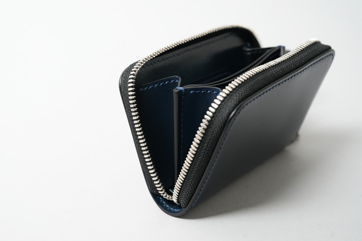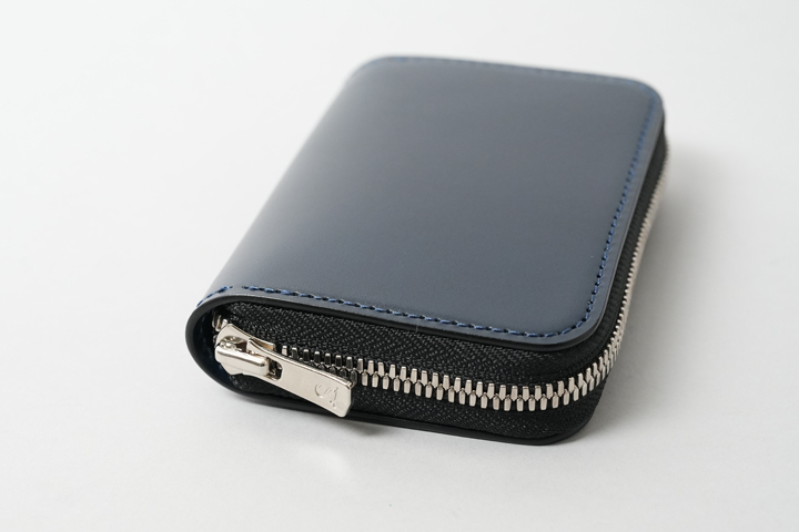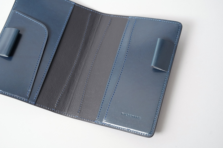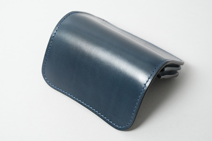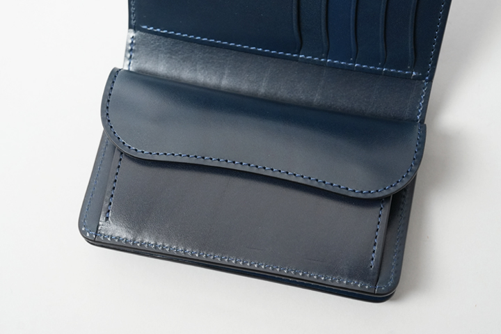 外装部分にポケットや装飾等は付属しませんが、その分サドルプルアップ/フレンチネイビーのフラットな板面を堪能することが出来ます。