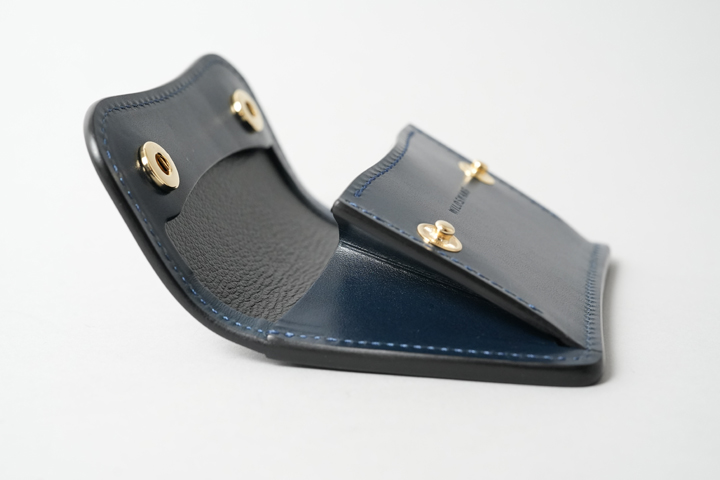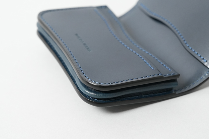 丸みを帯びたディティールやコバの重なりが特徴的な名刺入れです。