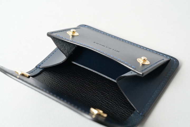 WILDSWANS のアイテムの中でも特徴的なコインケースの構造を持ったミニマルなアイテムです。