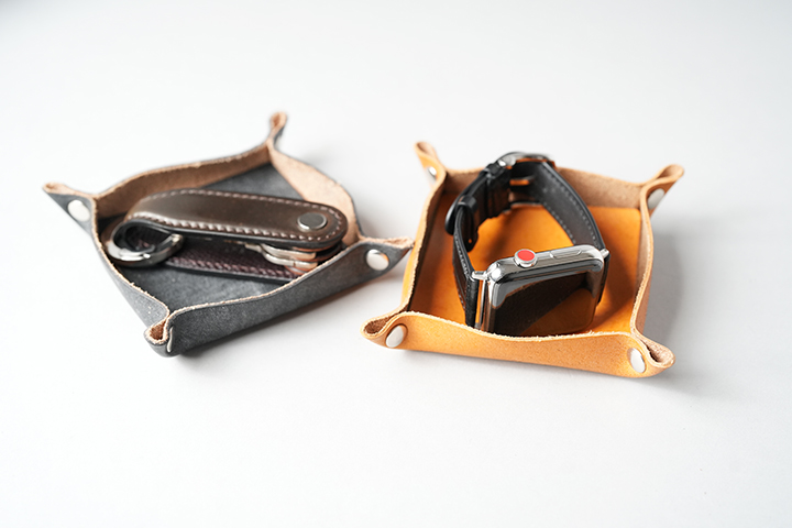 帰宅してカギや腕時計をさっと保管するのに便利なレザートレイ。