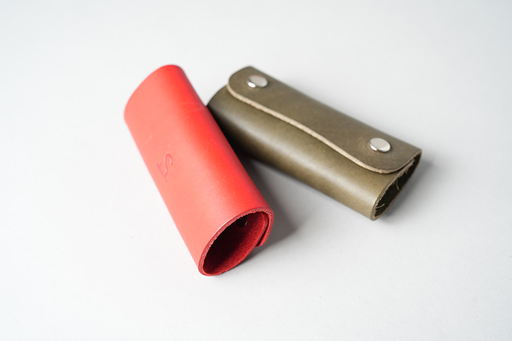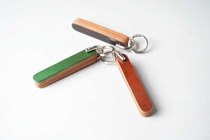 続いては、幾重にも革を重ねた肉厚なキーホルダーです。程よいボリューム感により手にも馴染みやすく、毎日お使い頂けるアイテムです。