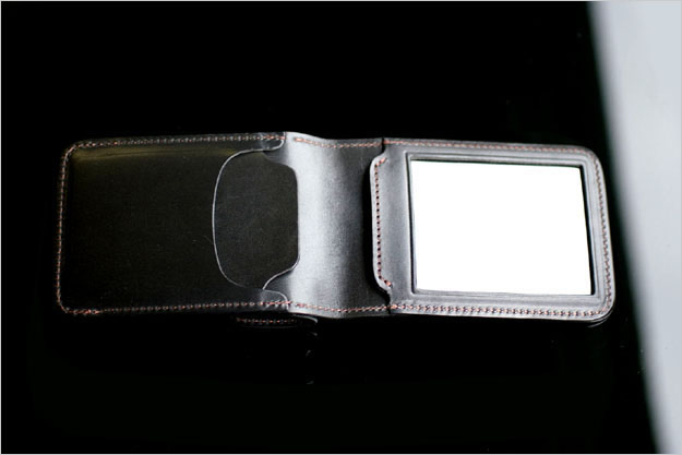 ここに身分証明証を入れた時などは、刑事ドラマ風にスっと取り出してみて、「こういう者だが・・・」とか、1度は言ってみたくなります。(守衛さんをはじめ、レンタルビデオ店の会員登録の際など、他の人に見せる時は何かに付けハードボイルドな気分になれます。)
