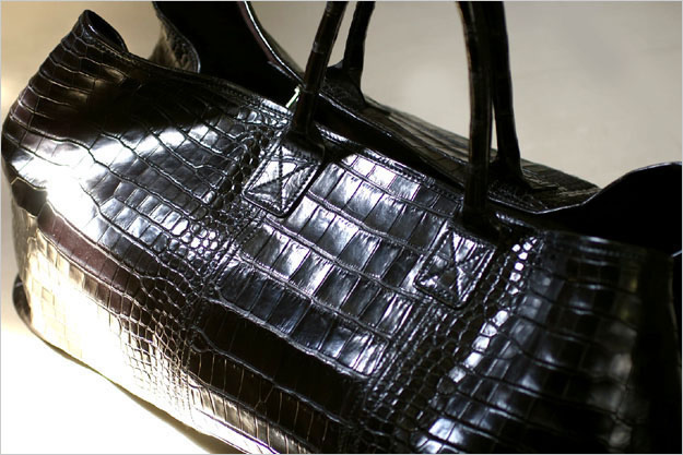 数年前に原宿・表参道某所でコッソリ販売されていた初期BEL-AIRがこれです。スモールクロコダイルを約5匹使用した途方も無く贅沢なトートバッグで、お値段の方も途方もなく、87万円(!)します。【※現在はこちらの製品のお取り扱いはございません。】