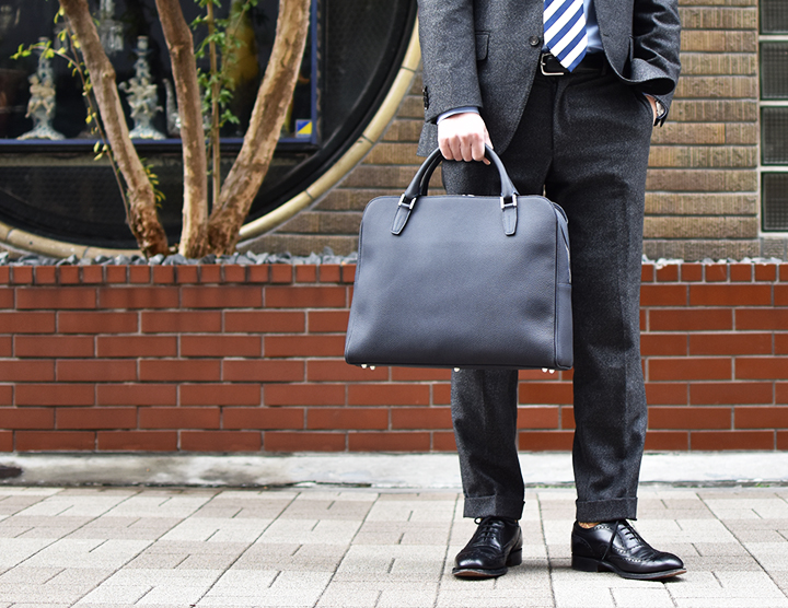 続いてご紹介するバッグはスーツやジャケットスタイルによく映えるLANCELOTです。メイン素材は、SOLONと同じシュランケンカーフとなります。上品なだけではなく丈夫で耐久性も高いシュランケンカーフは、他の革に比べて雨や水にも強く機能的な革ともいえます。