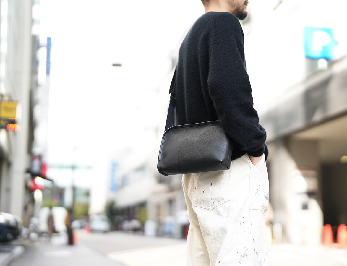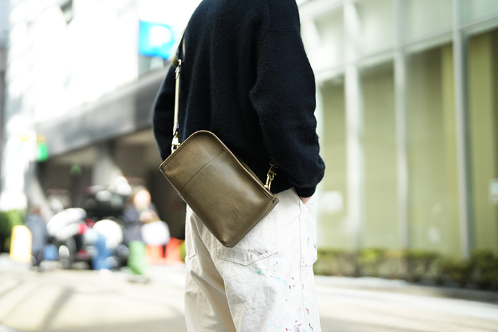 WILDSWANSではウォレットなど革小物の展開が多くを占めますが、バッグについても以前から展開しています。バッグはウォレットなどよりも面積が大きく、その分だけ革の使用面積も大きくなります。かねてより革をはじめとする厳選した素材を製作に採用するスタンスを貫いてきたWILDSWANSの腕の見せ所でもあります。
