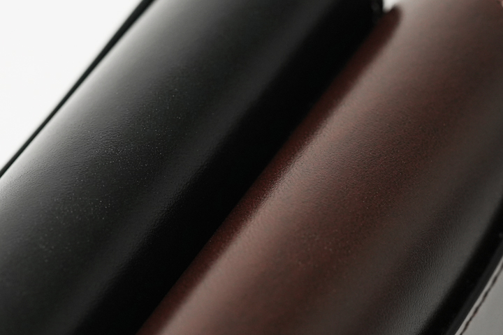 ブラックに続き、この度ようやくチョコカラーを定番色として展開する準備が整いました。こっくりと深いビターな発色はブラックとはまた趣の異なる魅力があります。なお、定番品ではブラックと同じくダークブラウンのステッチを使用します。