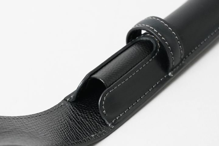ペンクリップを挟む部分の革は、耐久性のある摩擦に強い型押し革を使用しています。