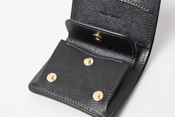 コインケースに専用のフラップが付くことで硬貨の飛び出しを防ぐだけでなく、