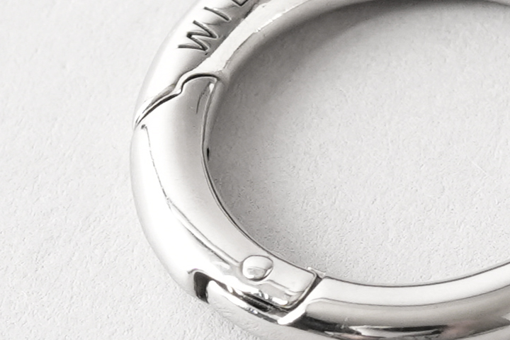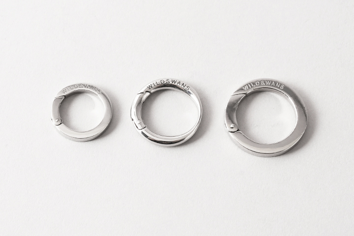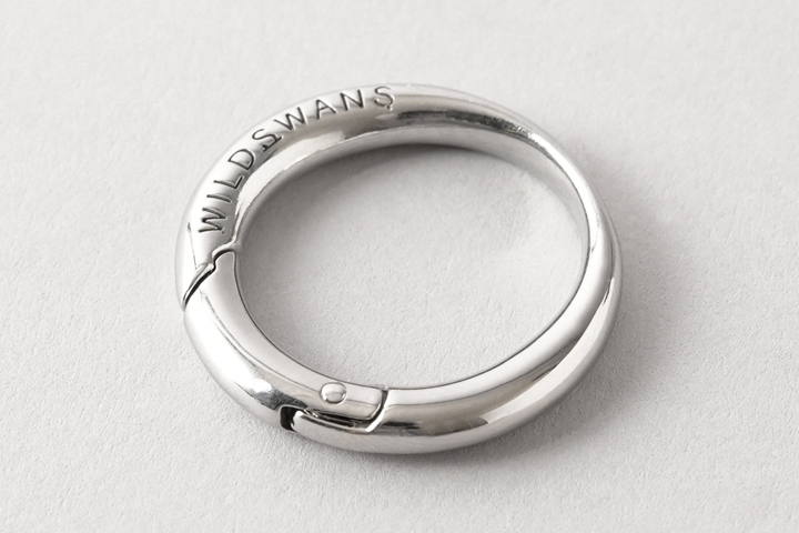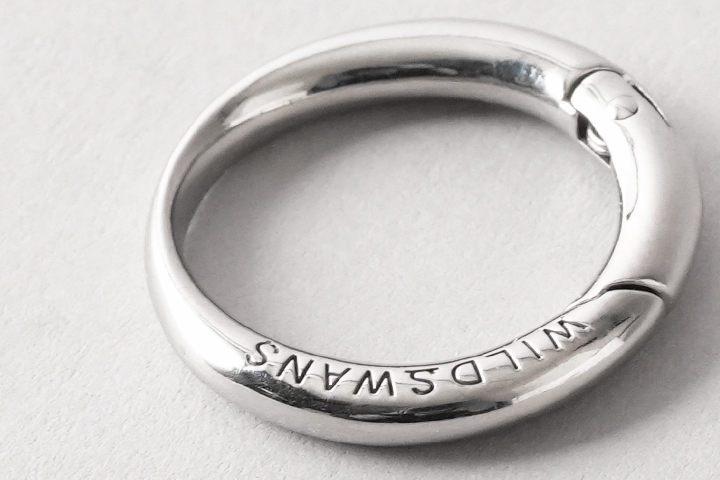 表面にはWILDSWANSのロゴが刻印されており、またリングの一部はバネ式のゲートになっています。