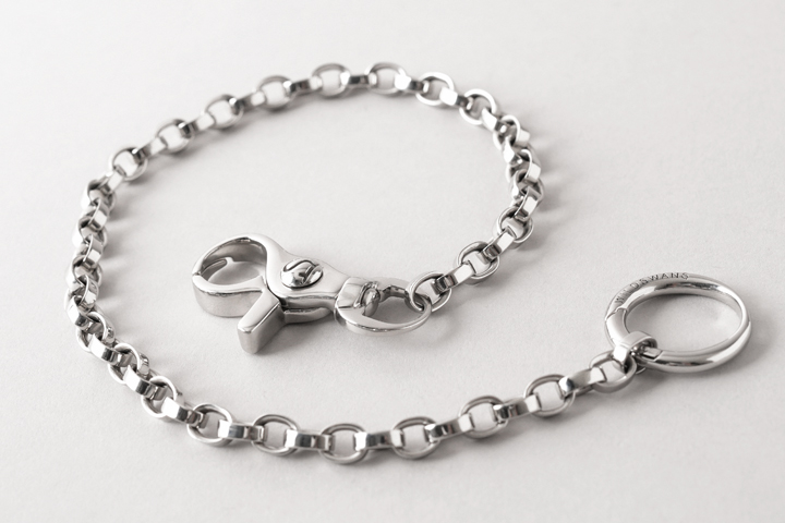 オリジナルのサージカルステンレス製チェーンに新型のカラビナとTRIGGER SNAPを両端に接続したウォレットチェーンのフルセットです。