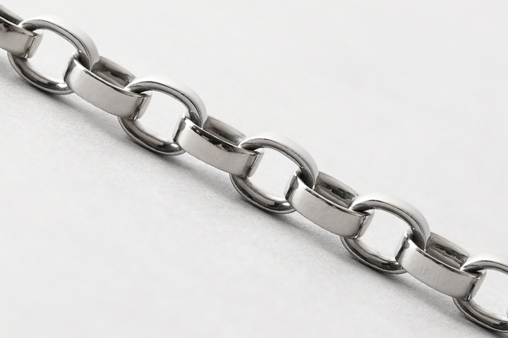 チェーンのコマからデザインされた完全オリジナルのアイテムです。 サージカルステンレス製のチェーンは巷にもありますが、このチェーンはコマ一つ一つを丹念に研磨して組み上げられており、精密且つ気の遠くなるような根気の要る工程を経て製作された渾身のアイテムです。